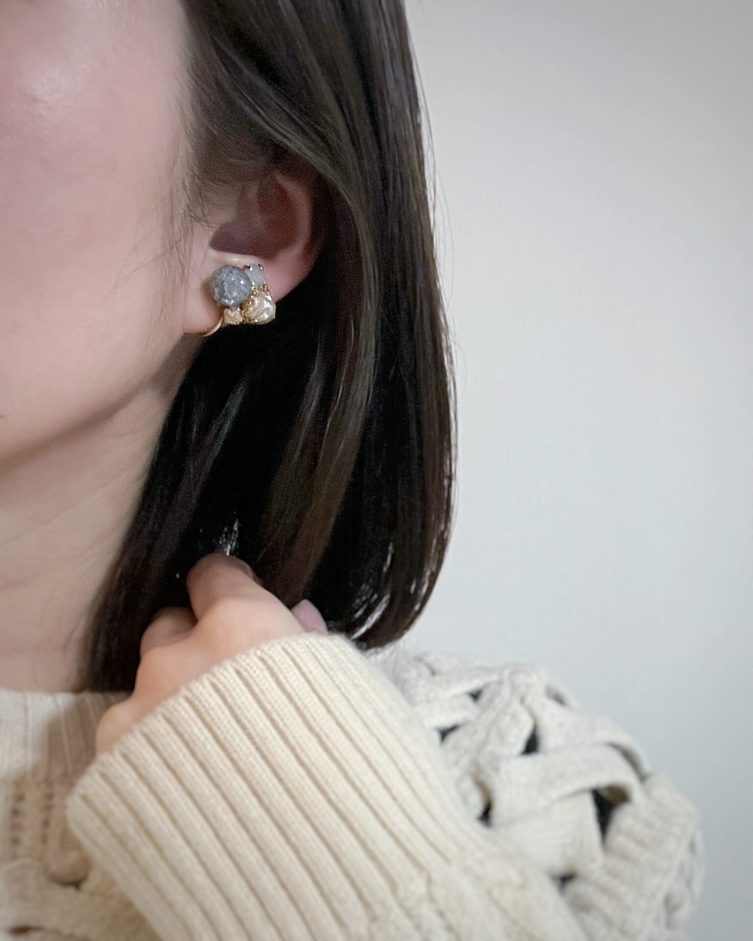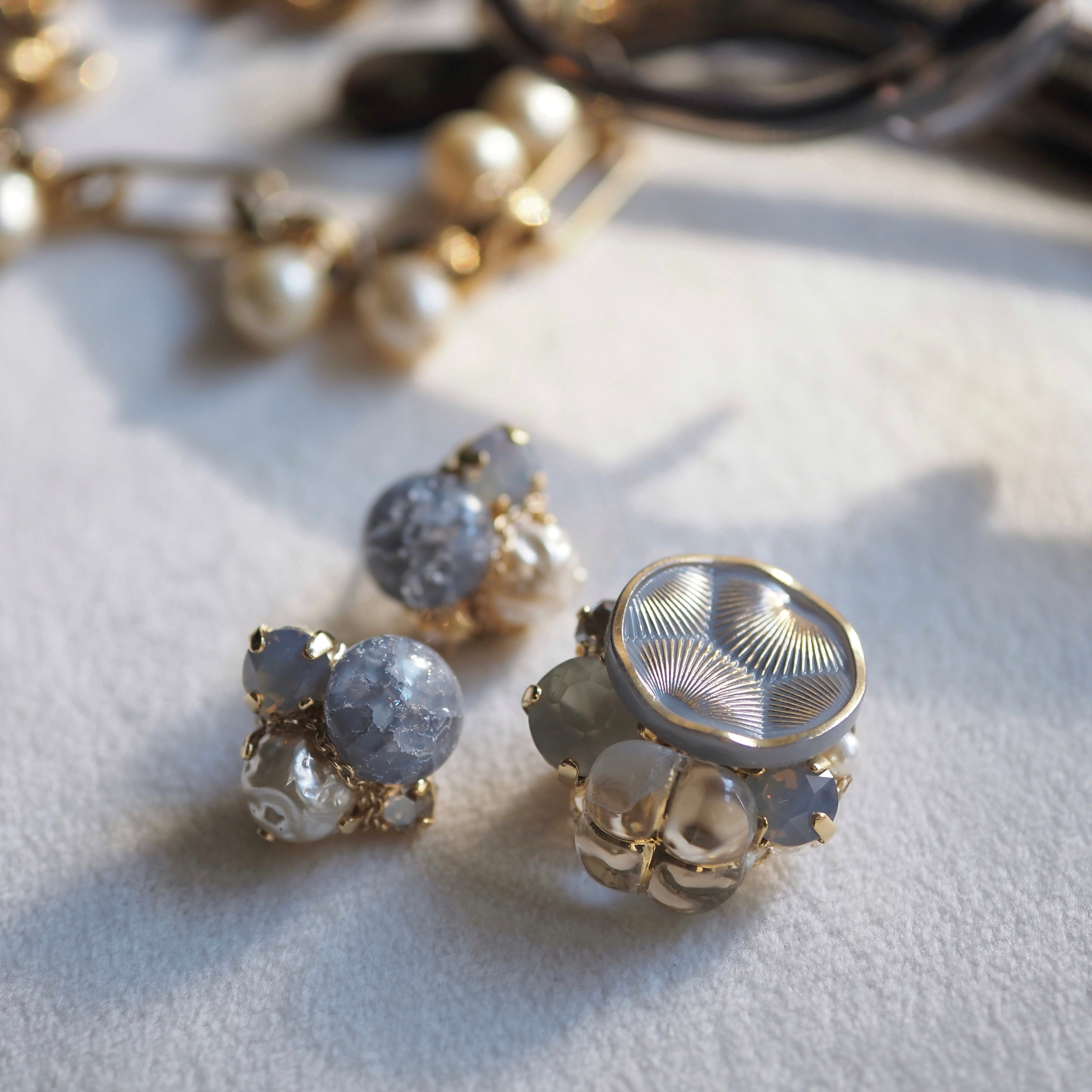 ひび割れの奥に小さな光を閉じ込めたように輝く耳飾り