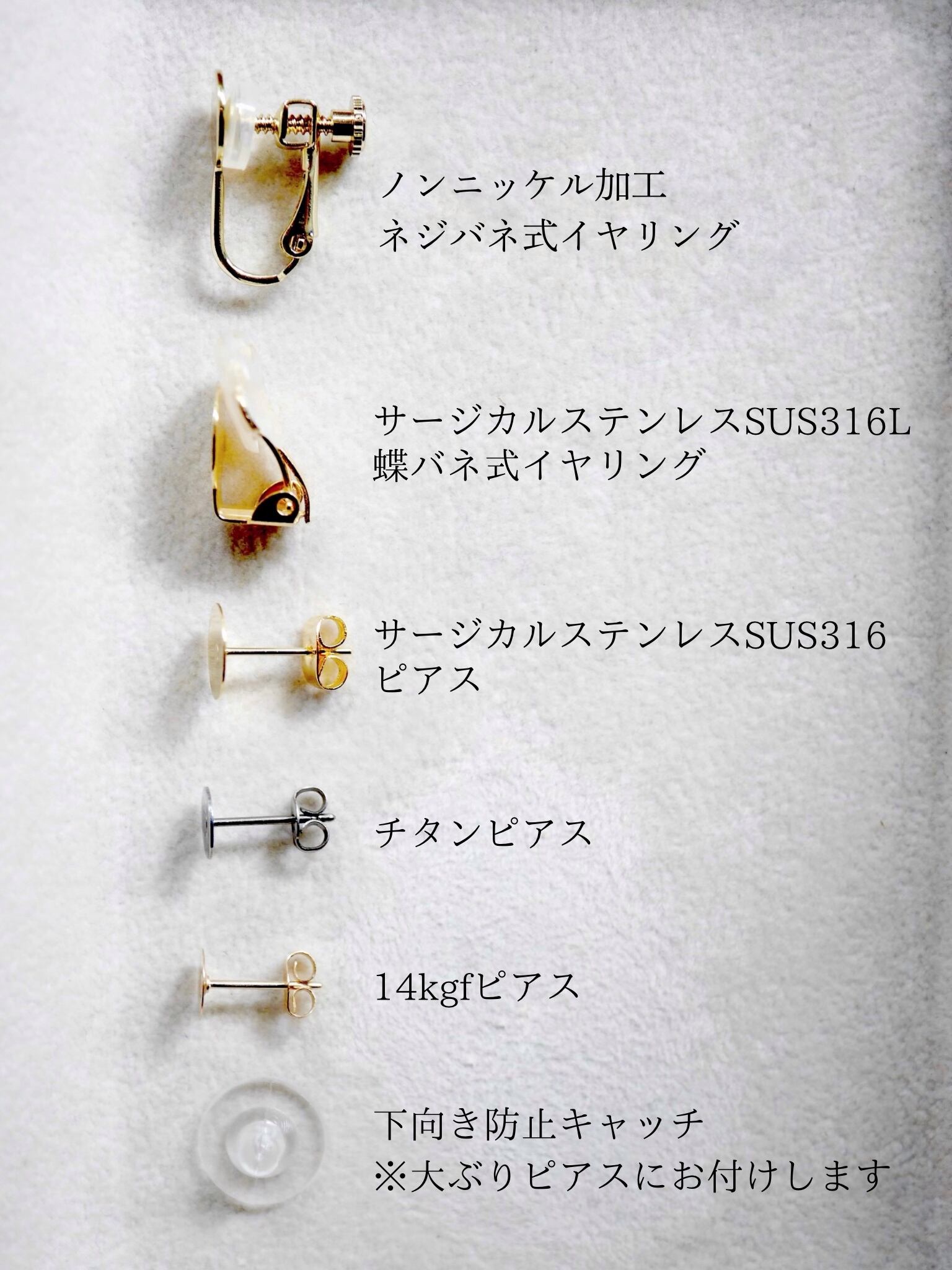 イヤリング金具は、下記からお選び頂けます。