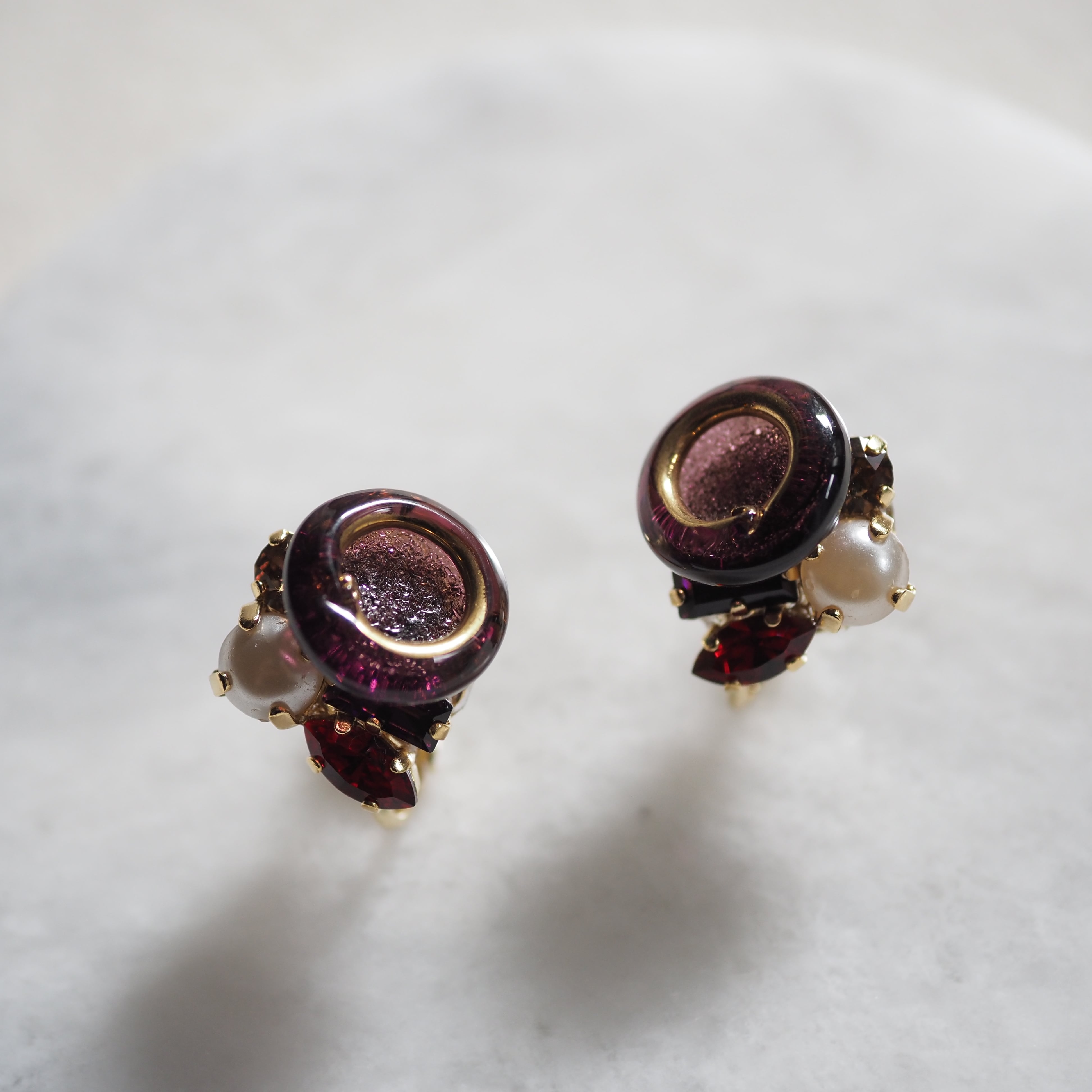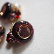 フランスのヴィンテージガラスボタンをあしらった耳飾り