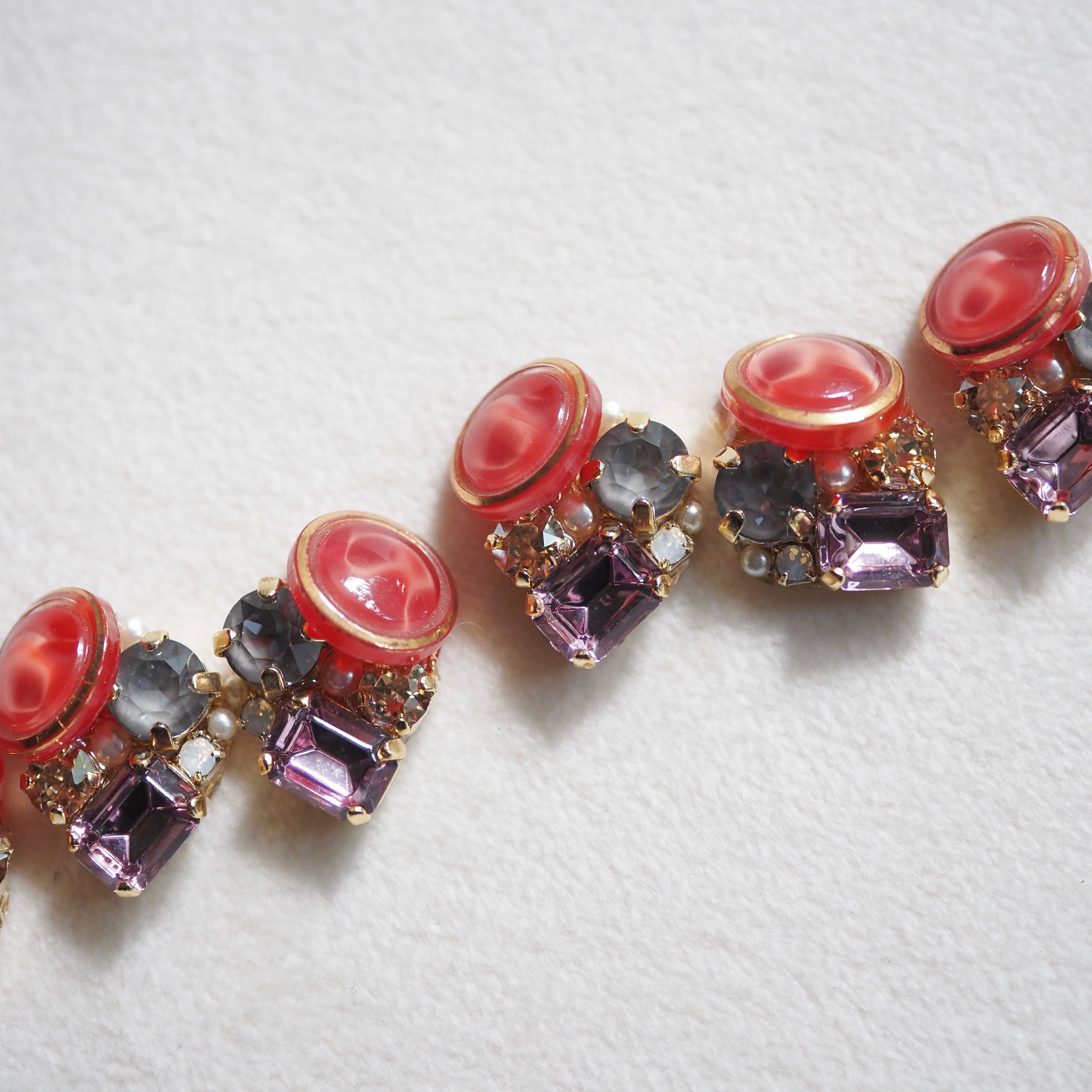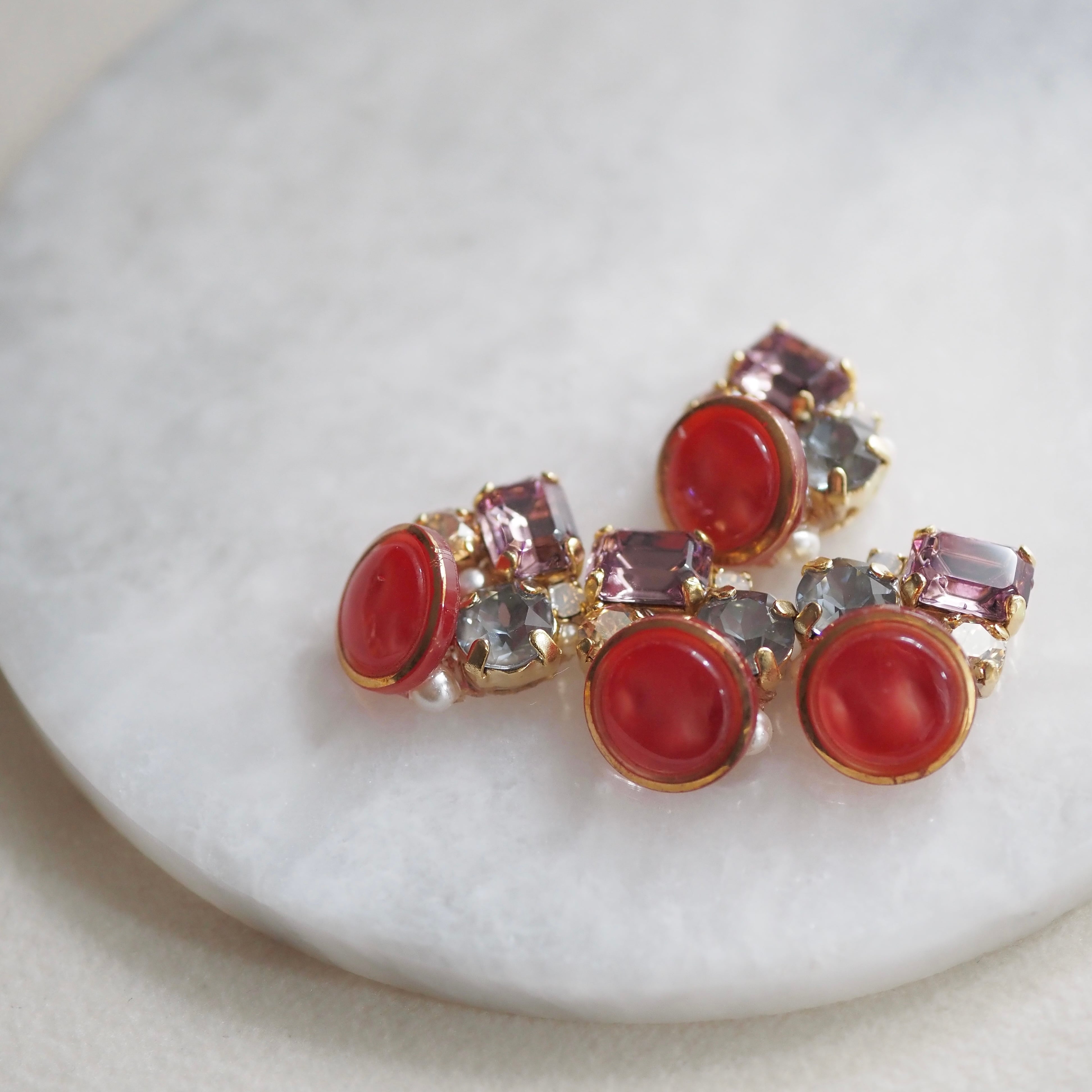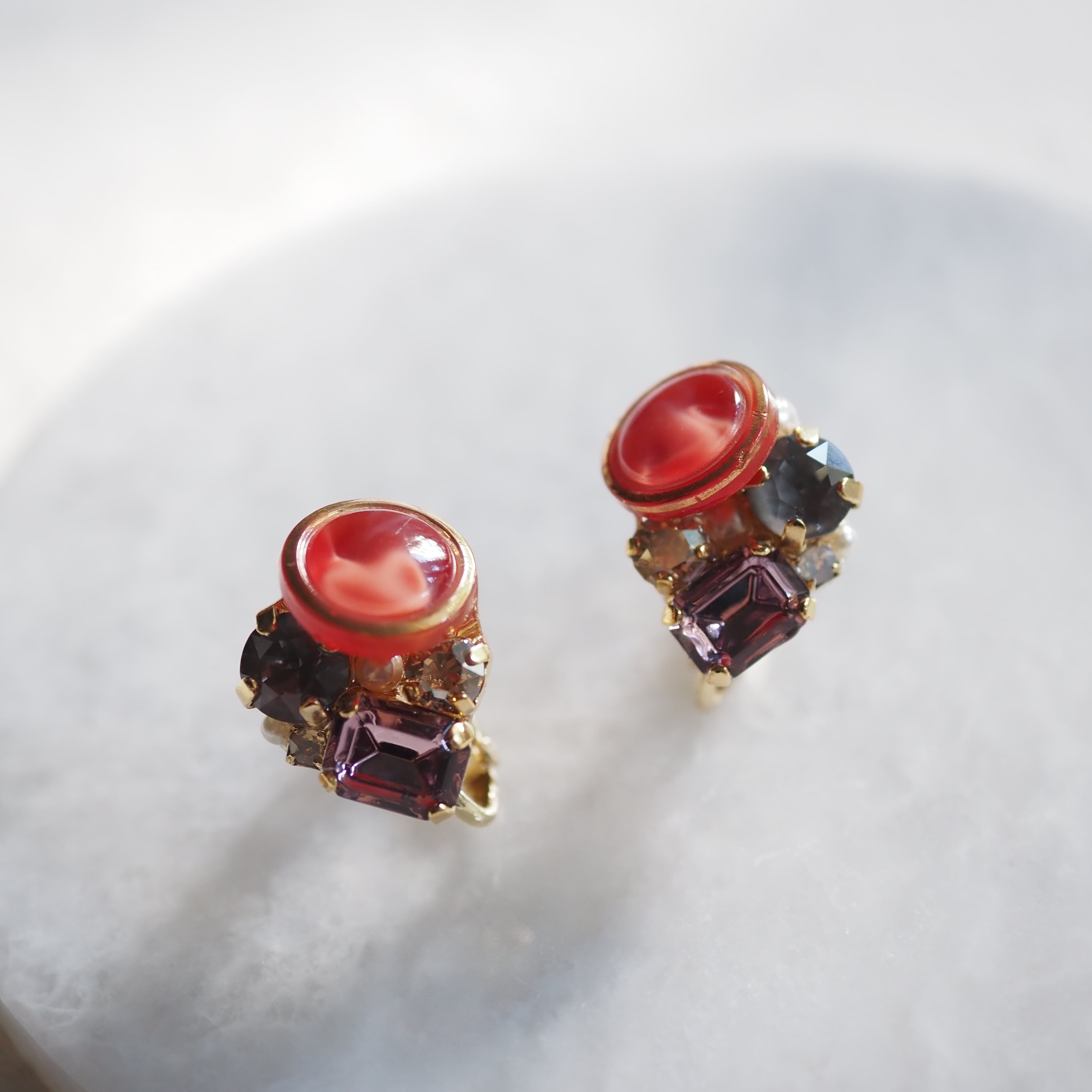フランスのヴィンテージガラスボタンを主役にした耳飾り