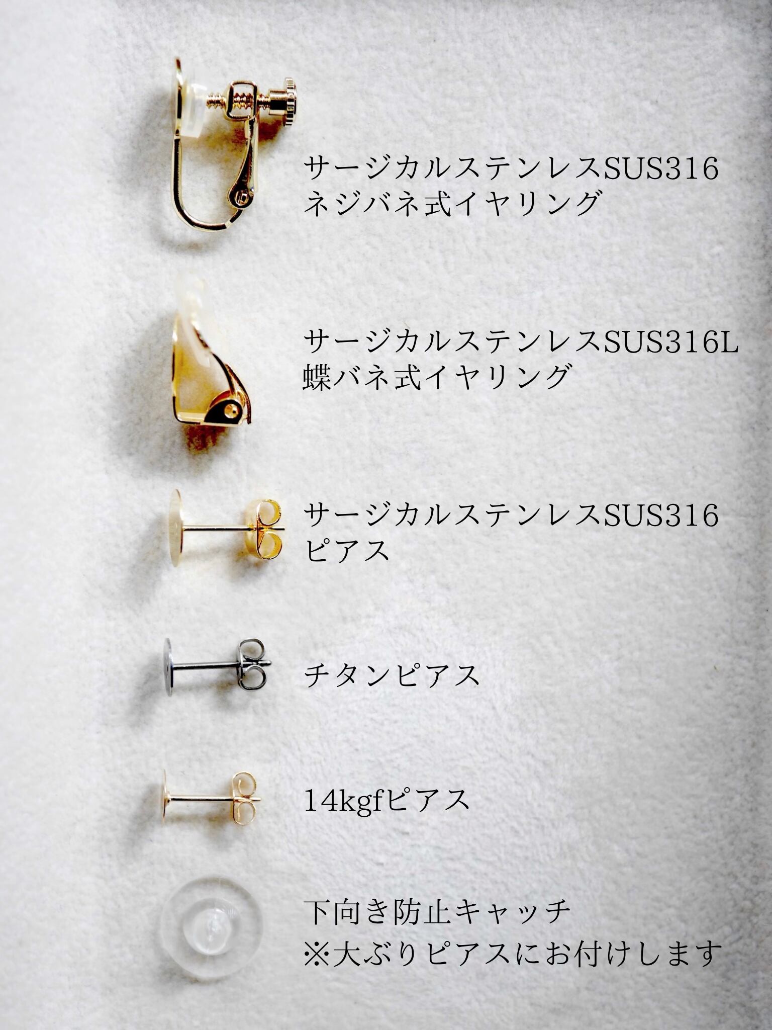 イヤリング金具は、下記からお選び頂けます。