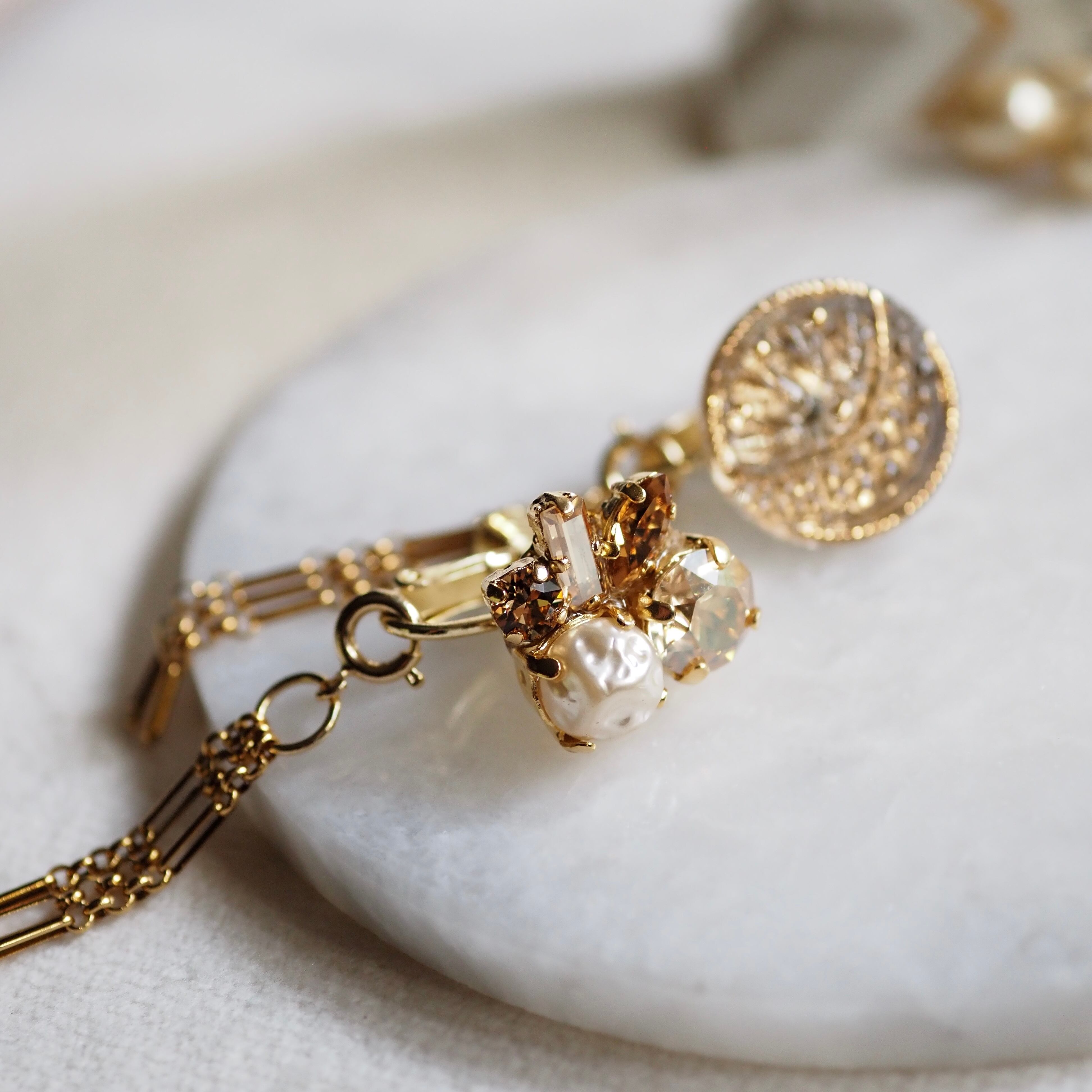 ヴィンテージパールとガラスストーンを添えた