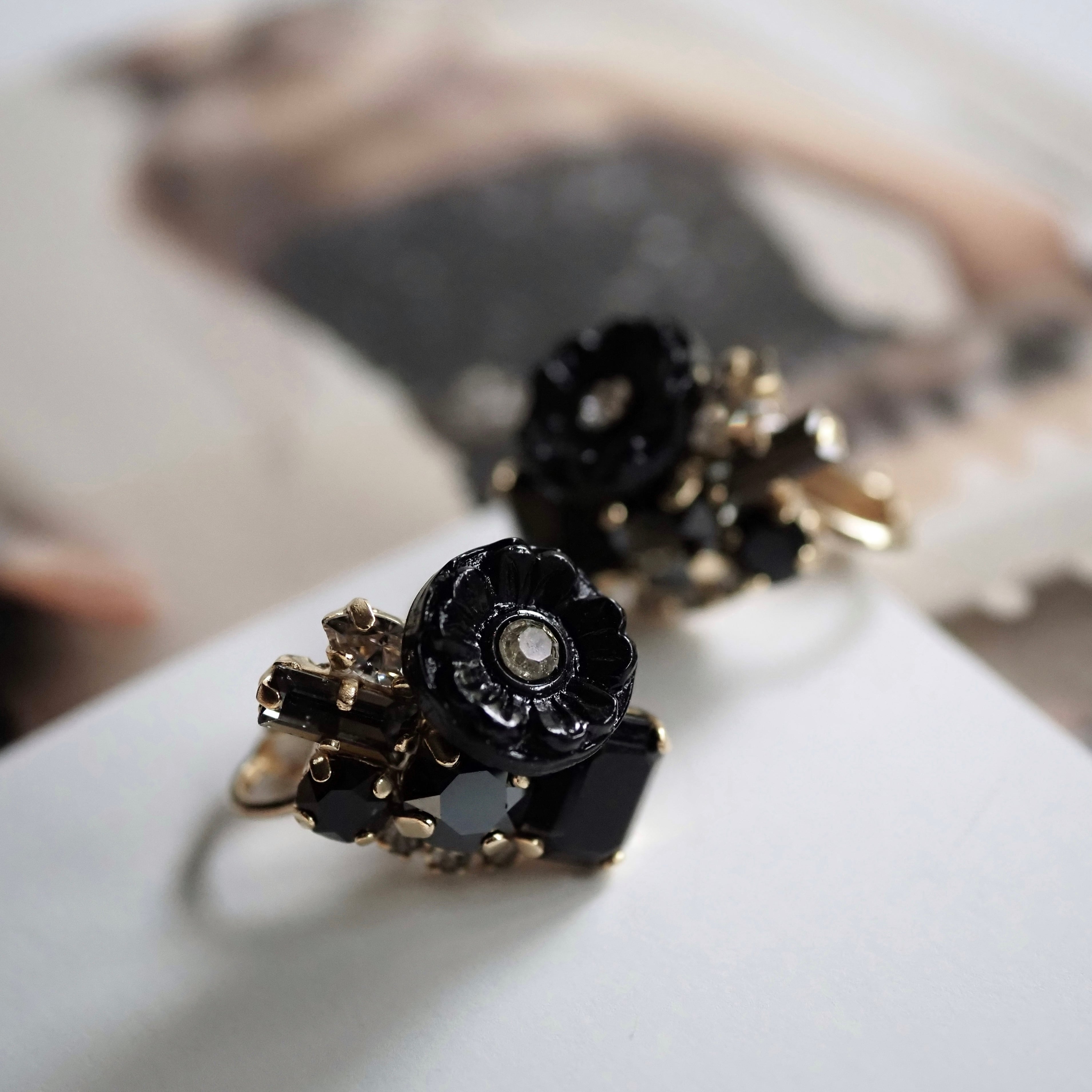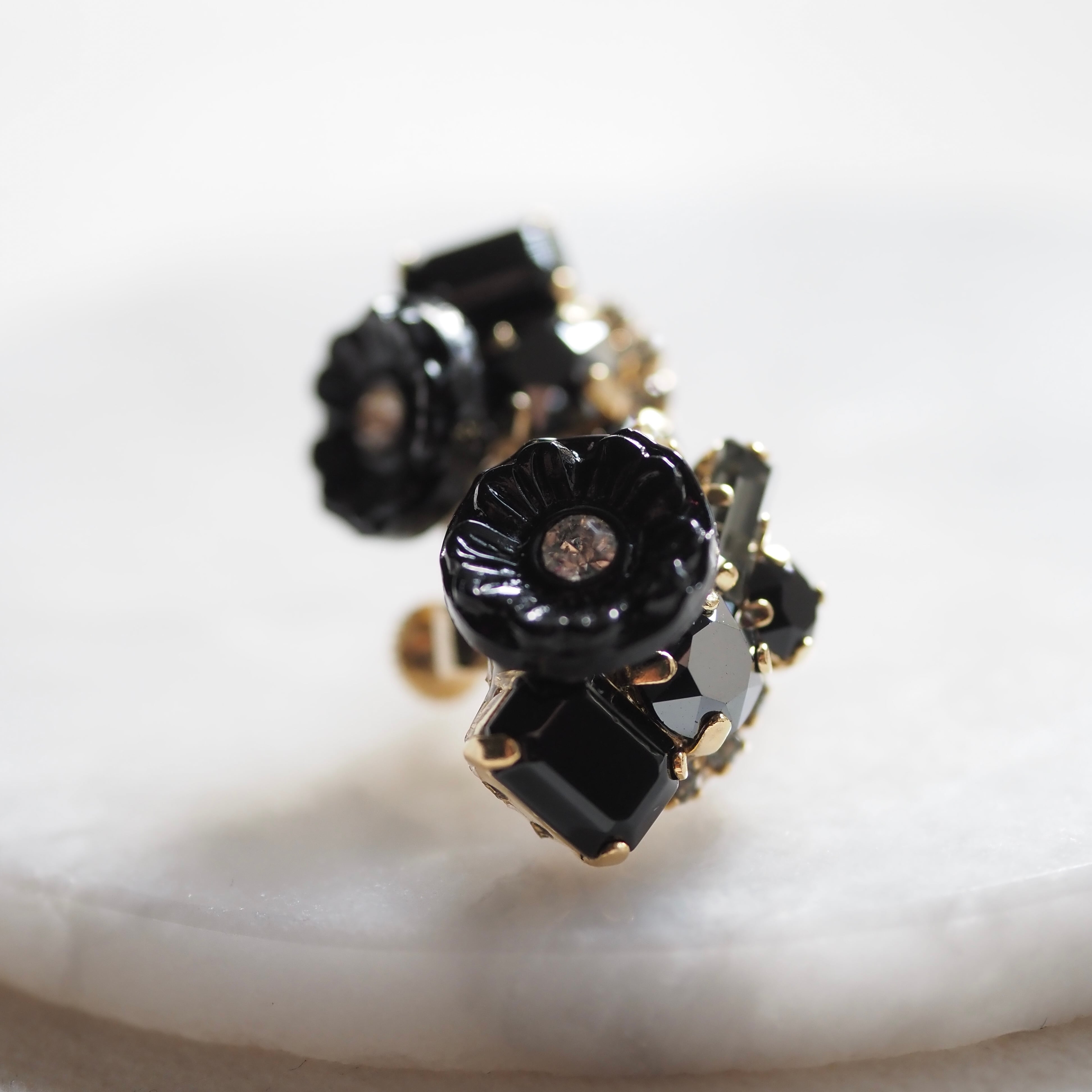 周りには、繊細な輝きのヴィンテージガラスストーンを重ね、
