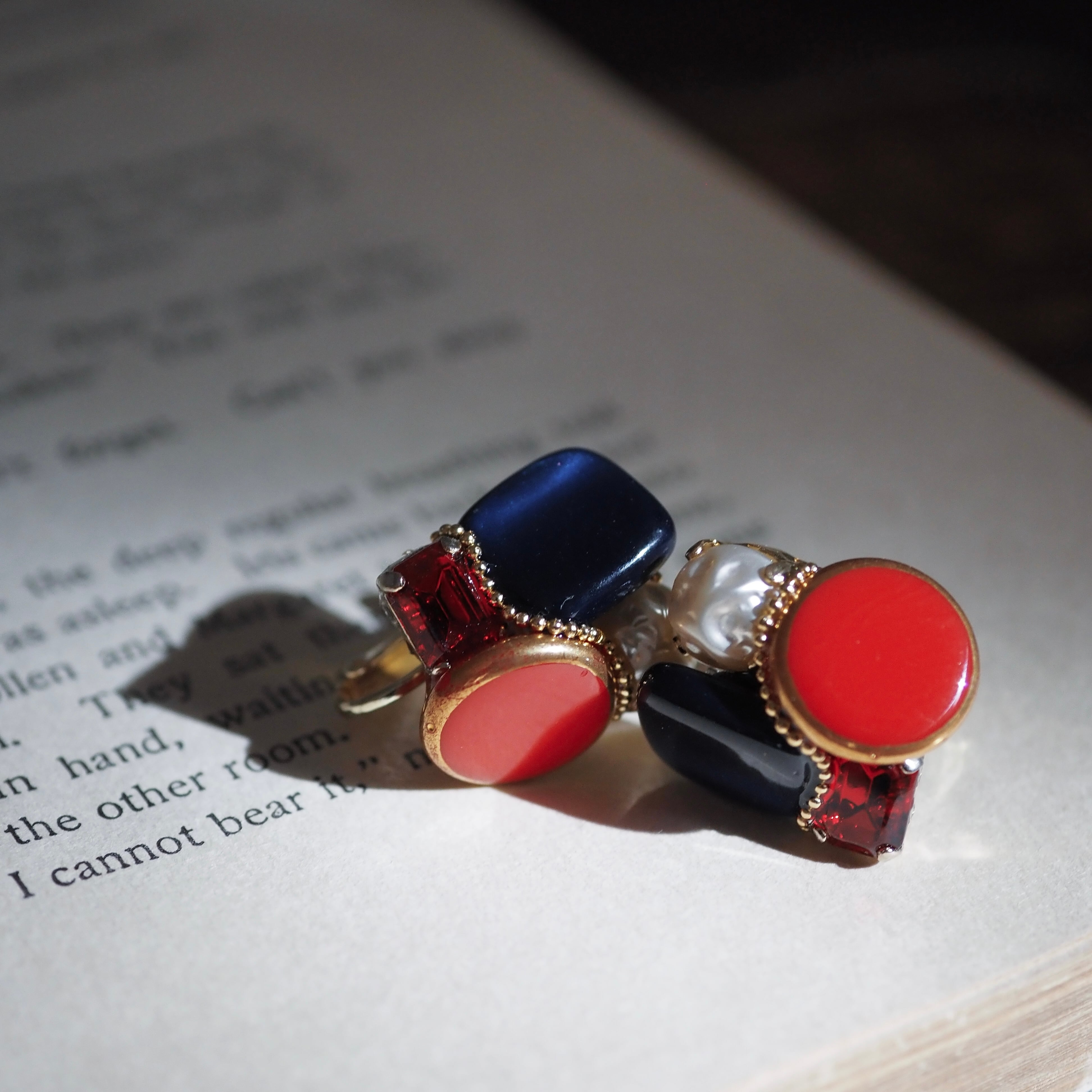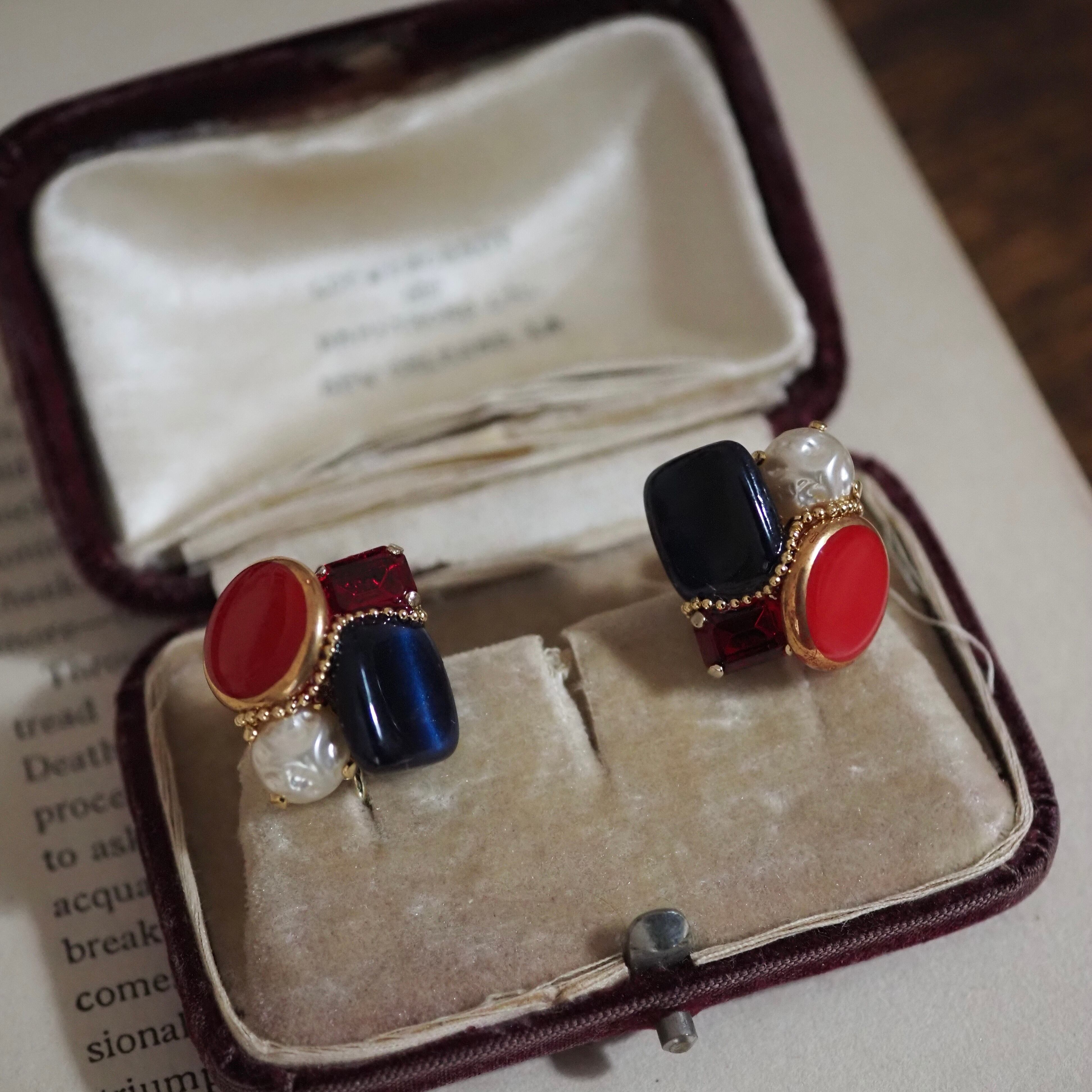 トリコロールのレトロな色合わせで仕立てた耳飾りです。